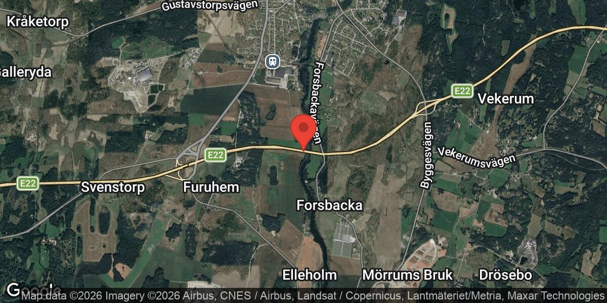 Den aktuella platsen är på E22 i närheten av Mörrum, vilket är relevant för trafikanter i området.