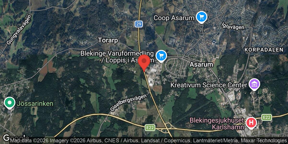 Den aktuella platsen är norr om Karlshamn, på Väg 29, vilket är relevant för trafikanter i området.